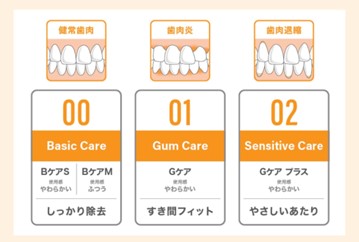 それぞれの毛先加工は、歯肉や歯面の状態に応じたものとなっています。