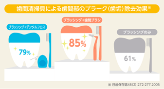そこで、デンタルフロスや歯間ブラシを併用することで、約79~85%にまで除去率がUPします。