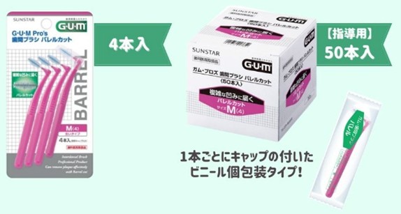 歯間ブラシについて、サンスターでは院内でのOHIの際にお使いいただける指導用タイプもご用意しております。