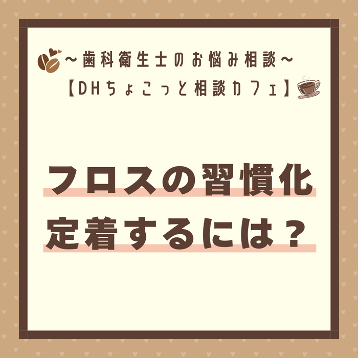 フロスを習慣化してもらうのがなかなか難しいです。毎回言ってもしつこいと思われてしまいそうで、、、