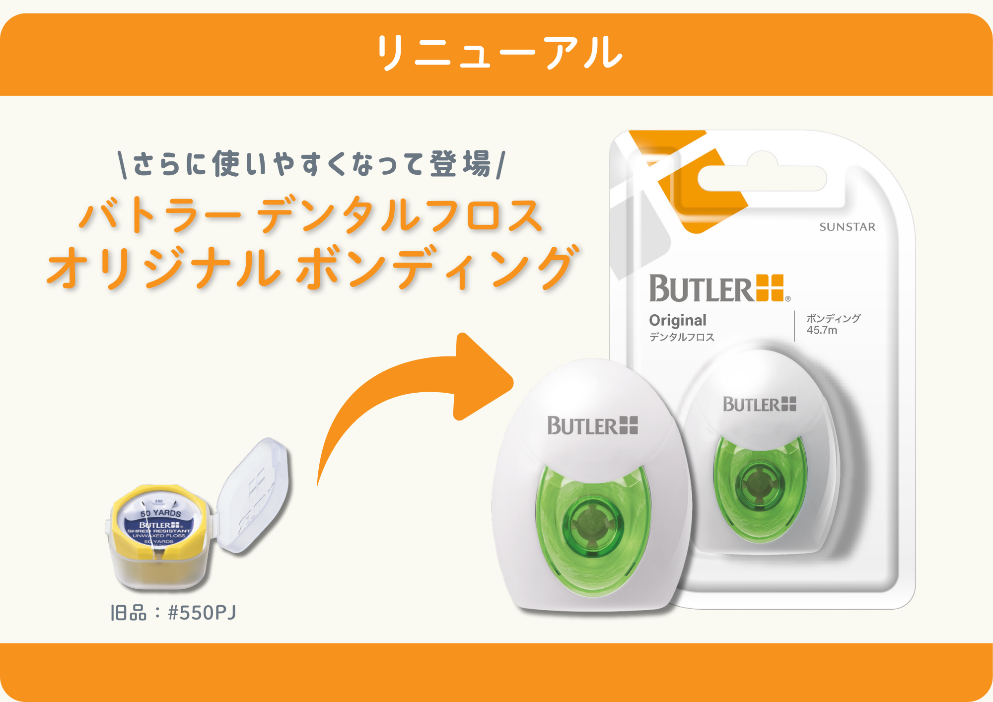 バトラー デンタルフロス #550PJからパッケージと名称等を変更して、リニューアル登場!
