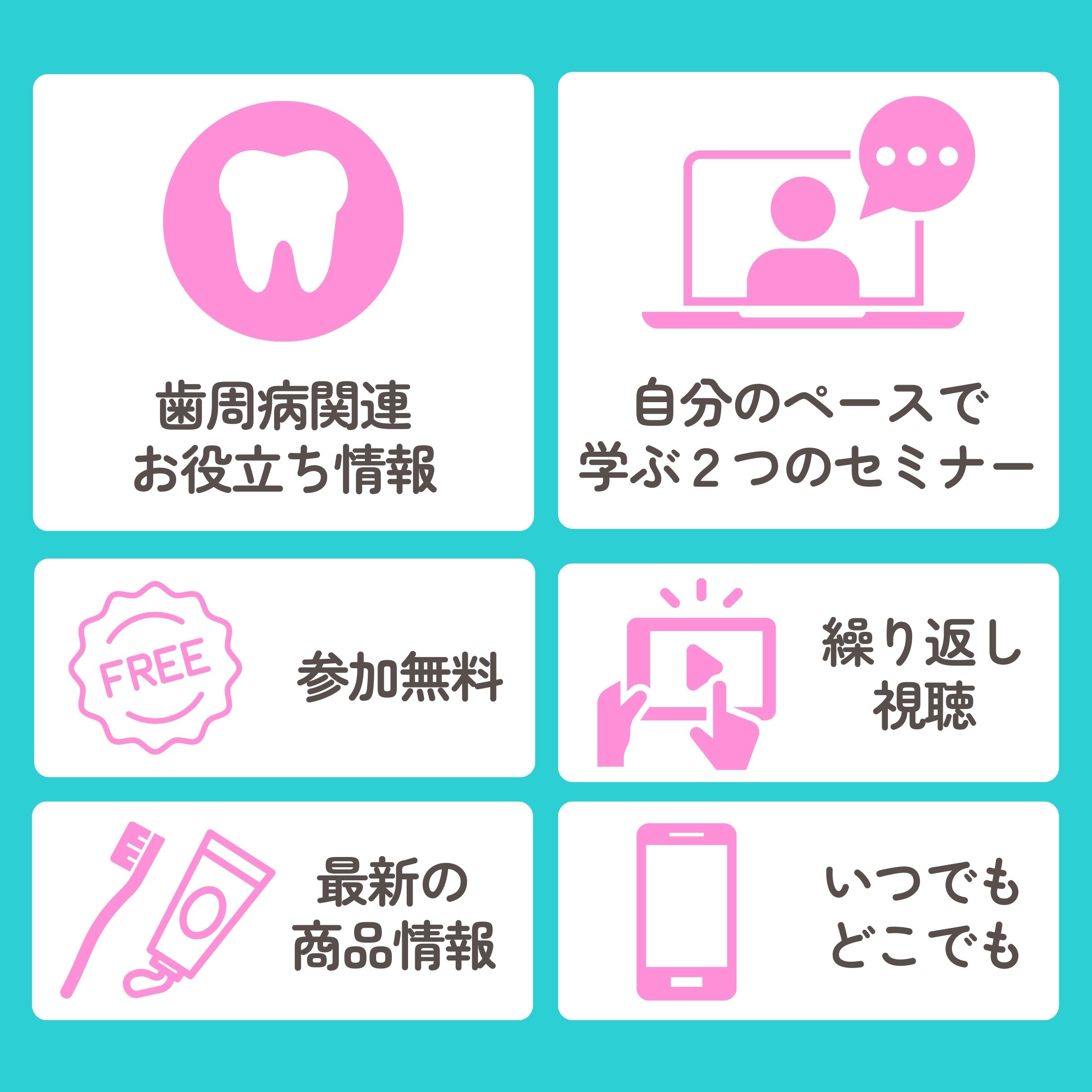 今秋の内容は、「歯周病患者さんのOHI」や「最新の歯周病(歯肉炎・歯周炎)薬」の情報を自宅で学べるセミナーです★